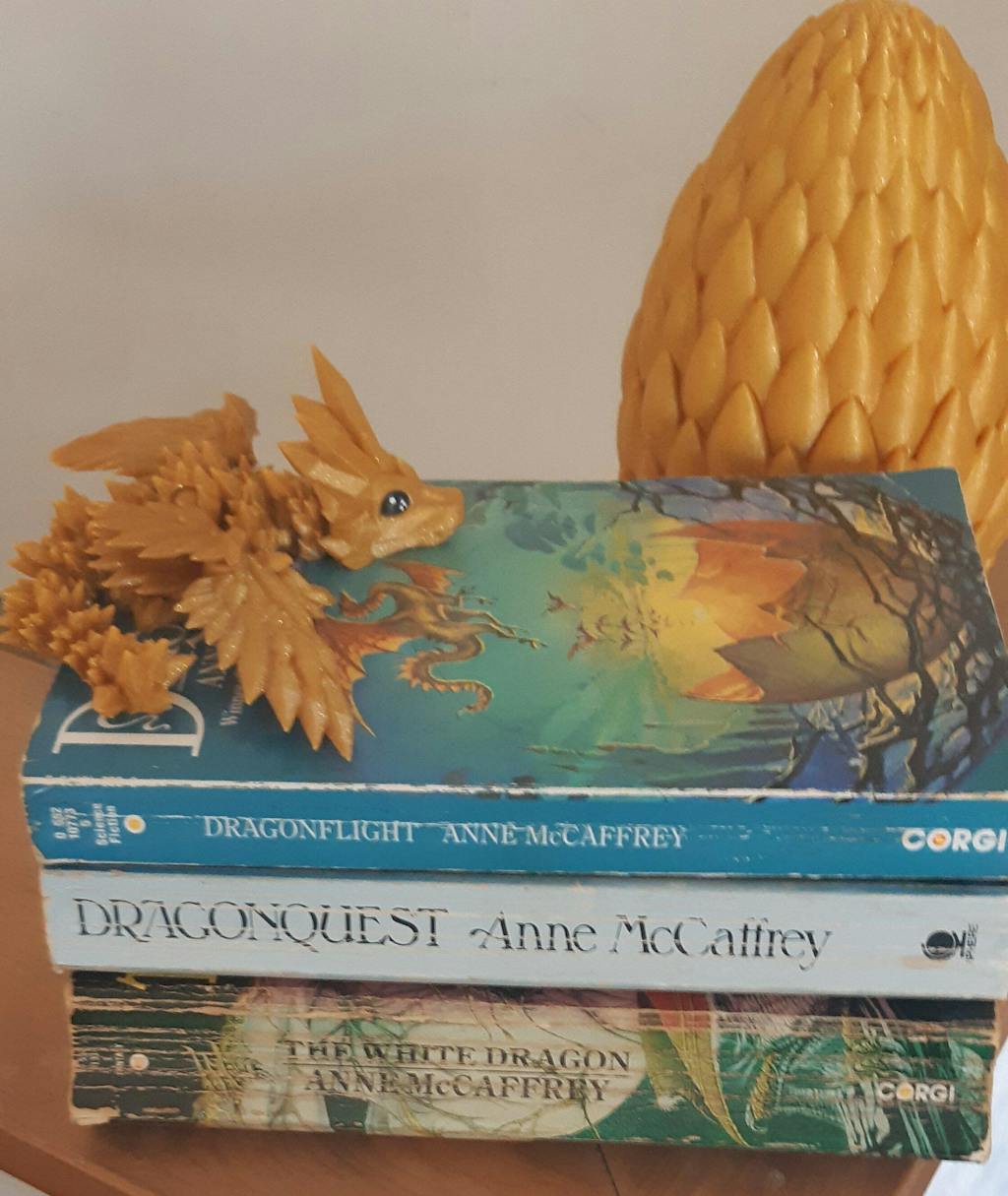Now I have my very own baby Ramoth to sit alongside my books whilst I channel my inner Lessa.