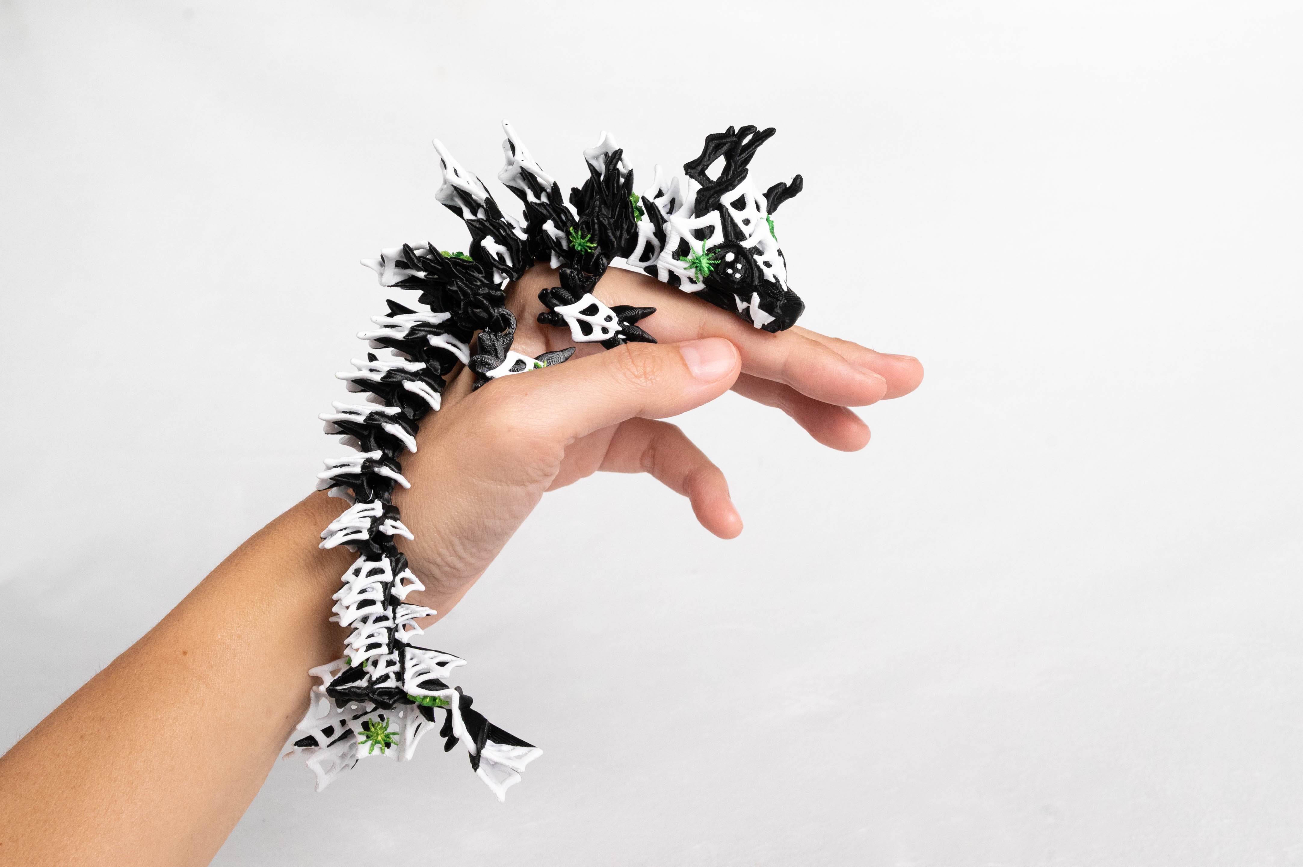 Let this 3D printed dragon alight in your space, and watch as it spins tales of moonlit nights, hidden realms, and the timeless dance between the ephemeral and the eternal. Whether as a centerpiece for your collection, a conversation starter, or a symbol of nature's endless wonders, the Baby Spider Dragon promises to enthrall. Dare to let this masterpiece spiral into your life, and be prepared for a dance of dreams and reality. Adopt your Fidget Baby Spider Dragon today!